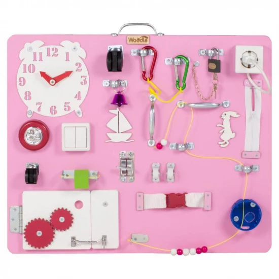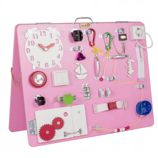 Также во время игр с бизибордом малышка расширяет словарный запас, становится более усидчивой, учится мыслить логически и просто весело проводит время.