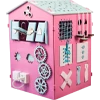 - Даже габаритный бизидомик не занимает много места в детской комнате. А поскольку все детали прочно прикреплены к основе, в игровой зоне всегда царят порядок и чистота.