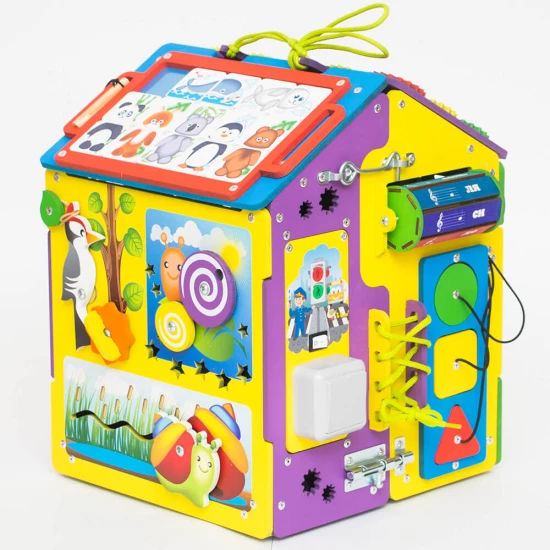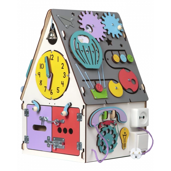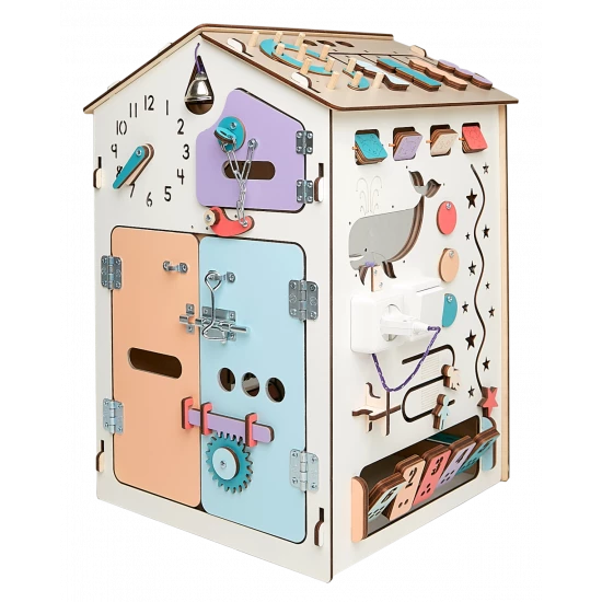 А благодаря разнообразной цветовой гамме моделей можно купить бизиборд домик как мальчику, так и девочке.